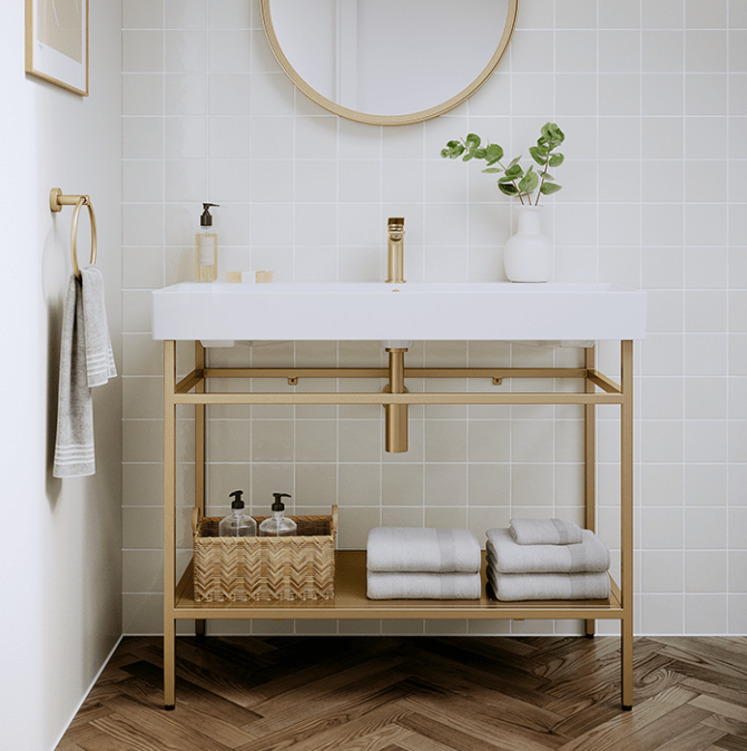 Finally, let’s not forget about mirrors. A brass-framed mirror is an excellent way to add a touch of elegance to the bathroom, whether you opt for a traditional design or something more contemporary. The warm tones of the brass work particularly well with a range of different wall colours and textures, making it a versatile choice for any bathroom.