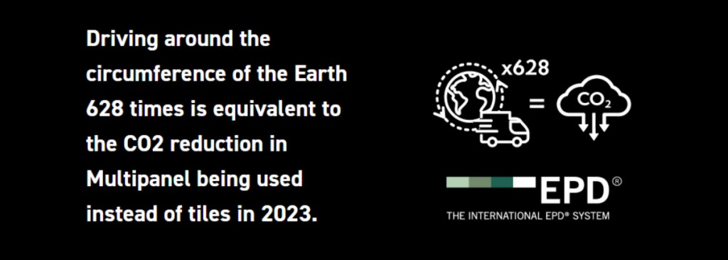 To illustrate the potential impact: using Multipanel products instead of tiles in 2023 resulted in a CO2 reduction equivalent to driving around the world 628 times. This staggering statistic highlights the significant difference such choices can make in reducing a project’s carbon footprint.