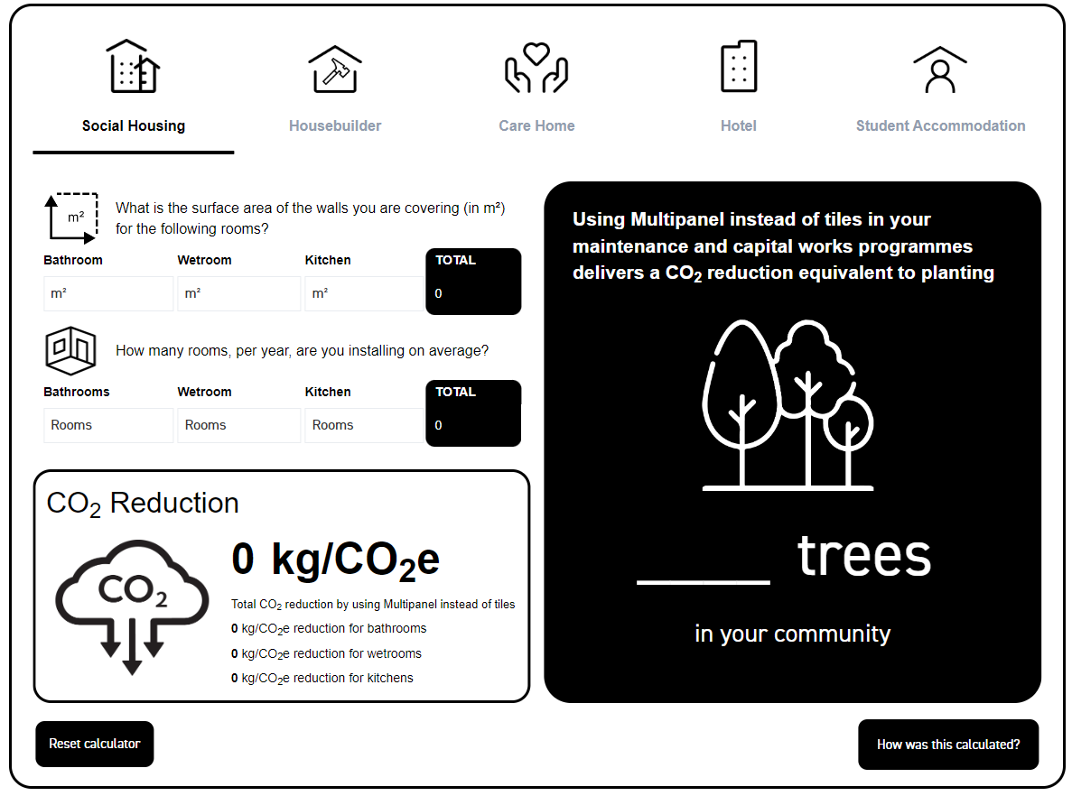 As the push towards sustainability intensifies in the construction industry, specifiers, architects, and designers are constantly seeking innovative tools to help reduce carbon emissions. In line with the UK’s commitment to achieve net zero carbon emissions by 2050, Multipanel has launched a revolutionary tool designed to support these efforts—the EPD (Environmental Product Declaration) Calculator. Available on both Multipanel and Naturepanel, this tool provides an easy way to calculate the CO2 savings of choosing wall panels over traditional tiles in various types of building projects.